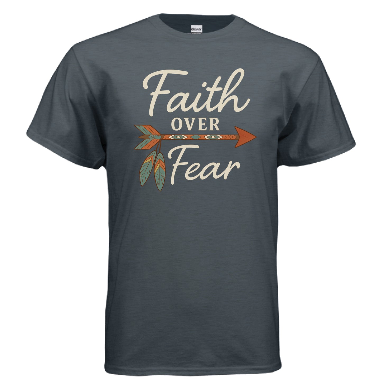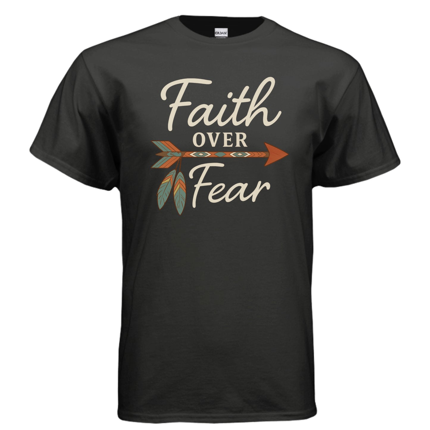 Faith Over Fear Women’s Christian T-Shirt | Inspirational Bible Verse Shirt with Arrow & Feathers | Religious Graphic Tee Gift for Women of Faith