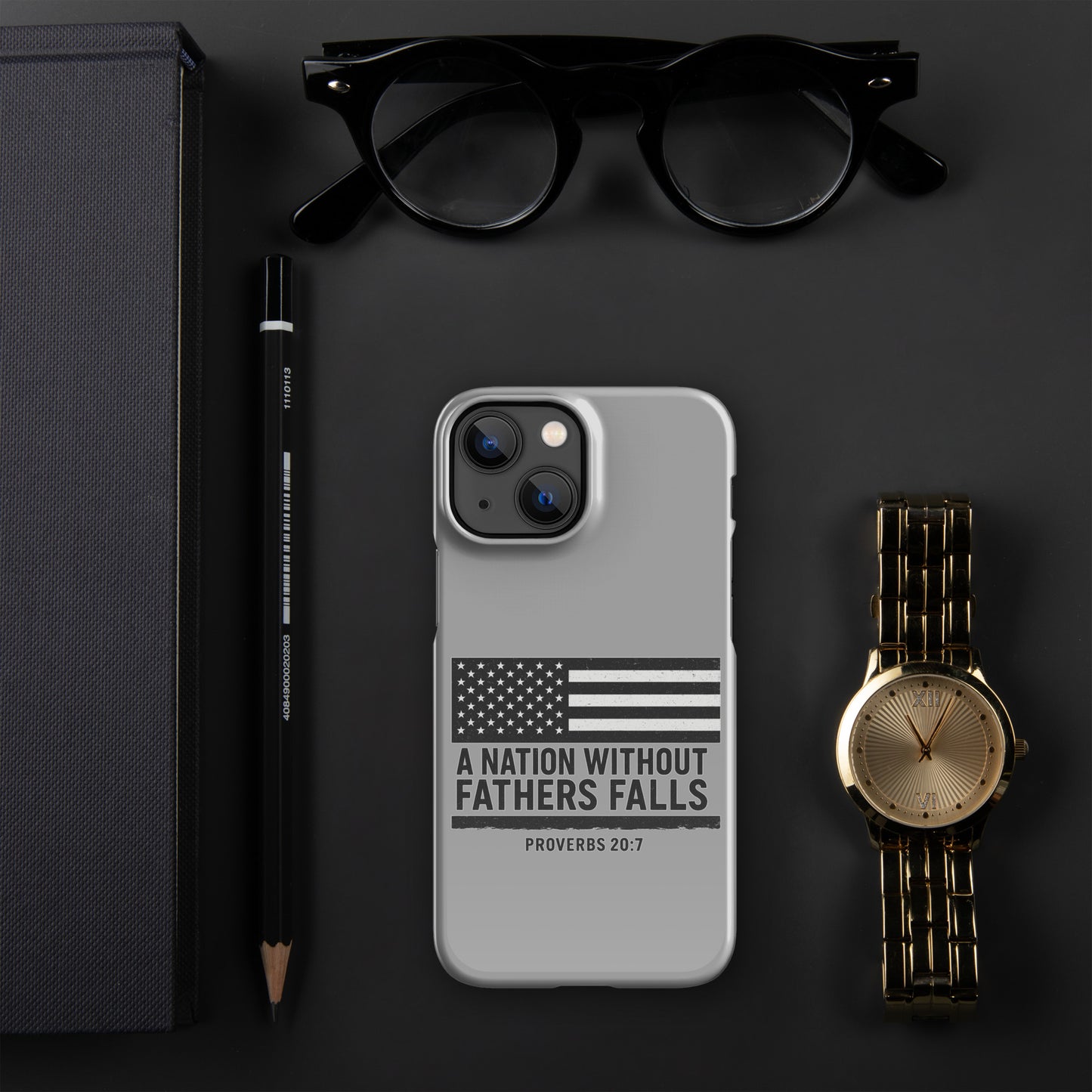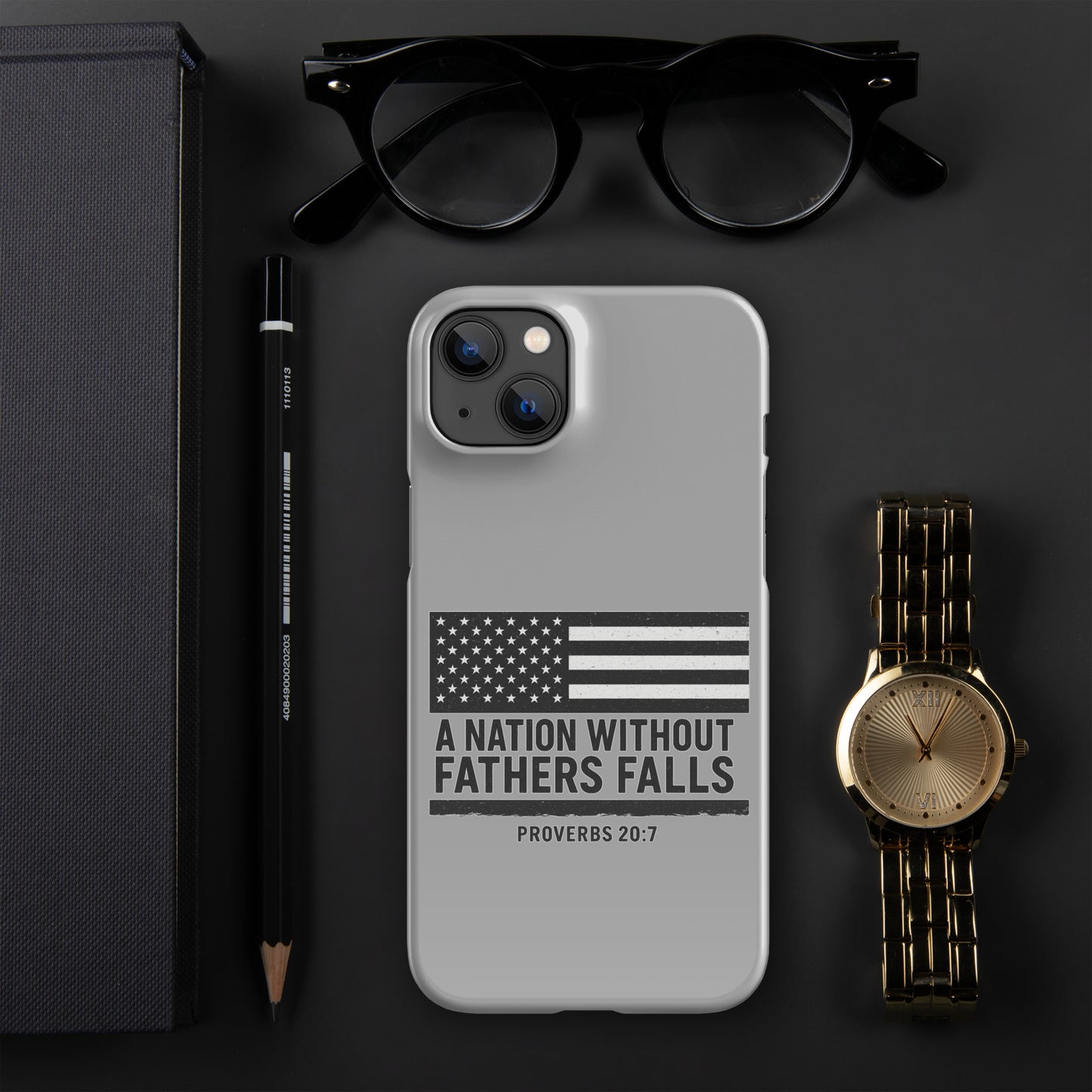 Nations Without Fathers Falls iPhone Case – Proverbs 20:7 Christian Men’s Collection, Gray Minimalist Phone Cover