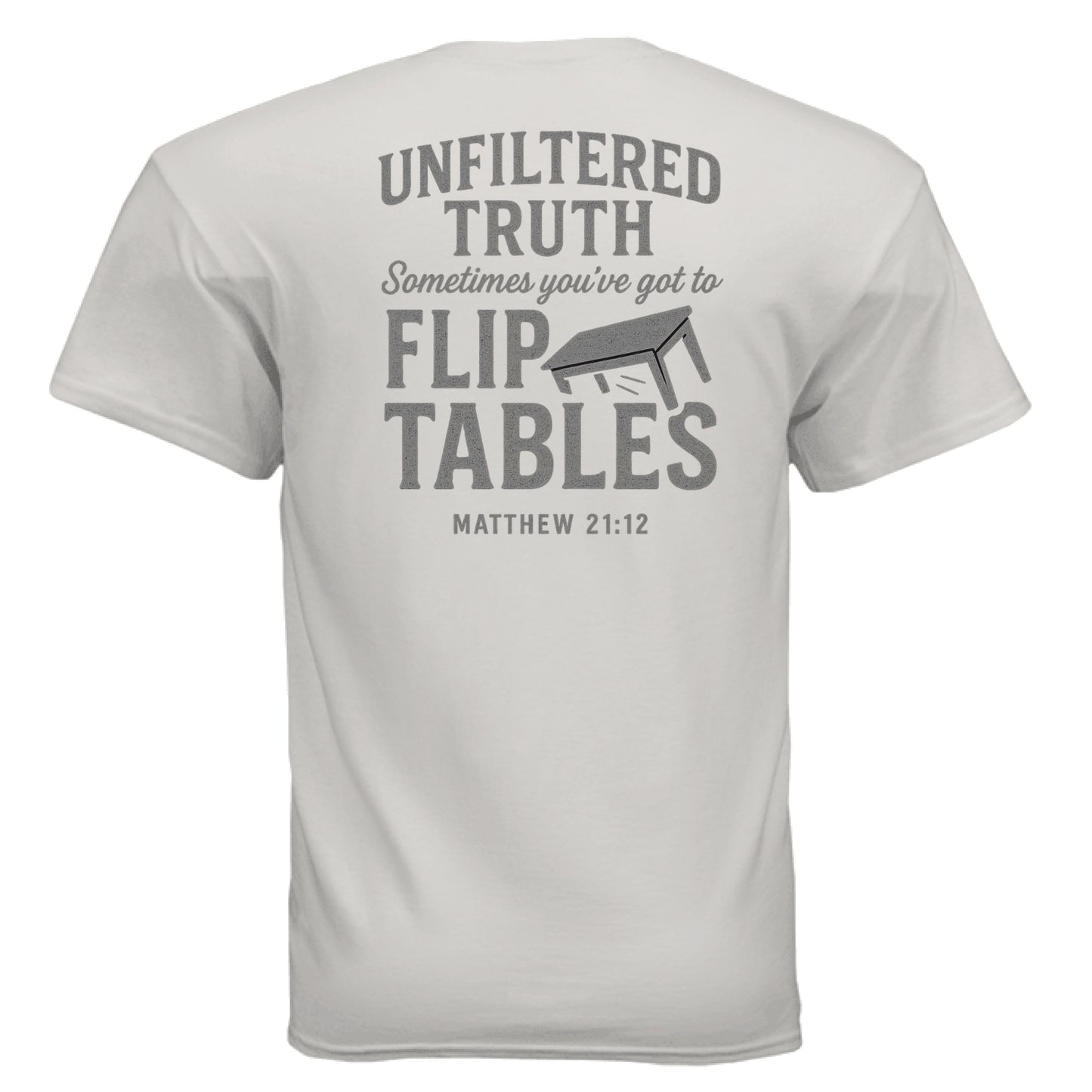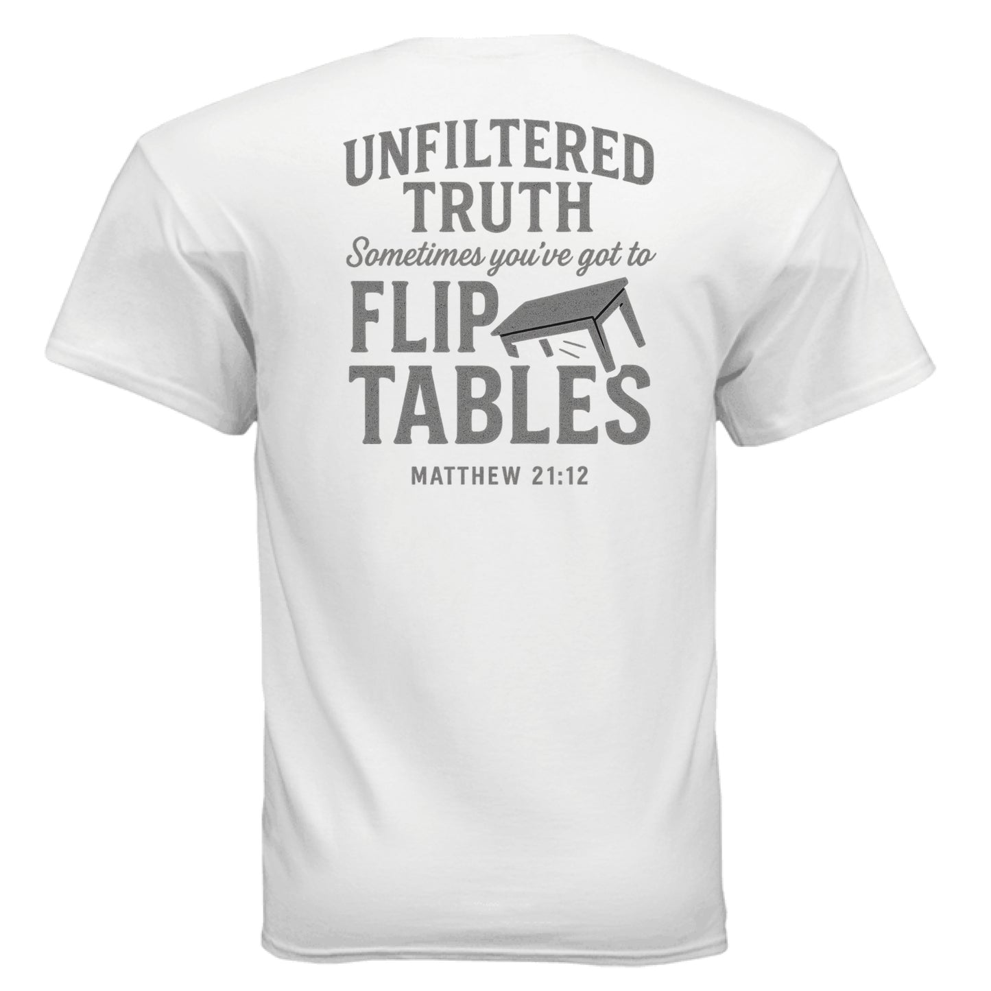 Unfiltered Truth “Sometimes You’ve Got to Flip Tables” Christian Graphic Tee – Matthew 21:12 Bible Verse Shirt